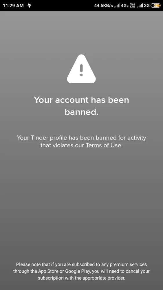 I was banned from tinder for unspecified user agreement violations