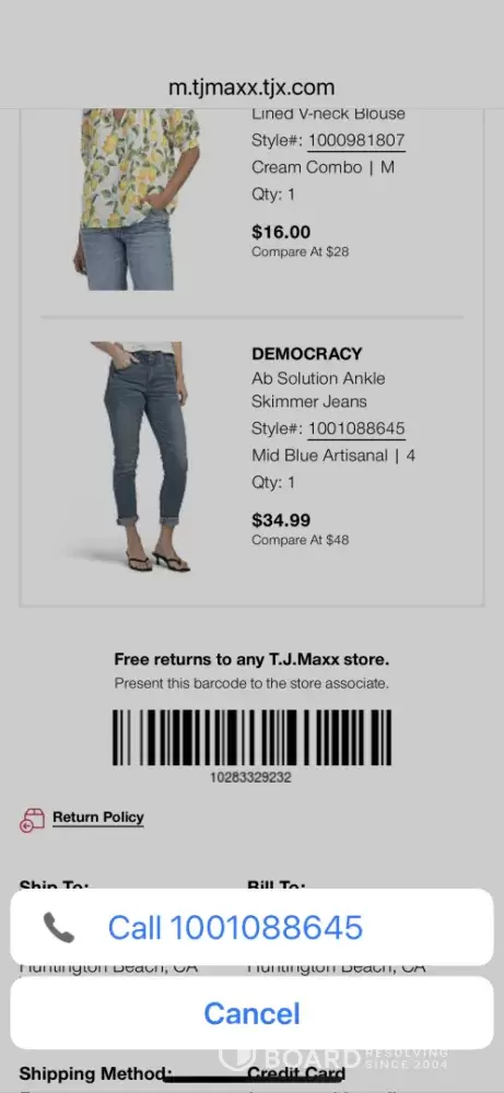Re: Order #10283329232; Order Date: Sept. 28, 2025 I purchased a Democracy womans jeans, size 4 and a Rachel Zoe, womans top size M on the above date. I paid additionallly, $19.99 4BusinessDays shipping, reluctantly, but I needed the jeans by Oct. 7th as I am going to Oregon for a wedding the next day. I received my package today, Oct. 1st, and to my...