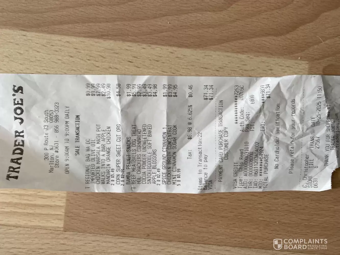 I went to Trader Joe’s yesterday, which was Saturday, the cashier as I was getting ready to check out, took my cart and started ringing my groceries up while I was still looking at some of the endcap items. After I returned home which is an hour away, I noticed that I was charged for regional bags that I did not purchase or receive. This makes me wonder if the cashier is pocketing additional cash in his pocket by ringing up items not purchased. I also picked up two bags of frozen corn and the price was clearly marked 1.49 on the tag. But I was charged 2.29 each. Being charged additionally or for things I did not purchase is extremely unfair. I don’t think anyone comes to the store hoping to get ripped off. I’m just extremely disappointed.
