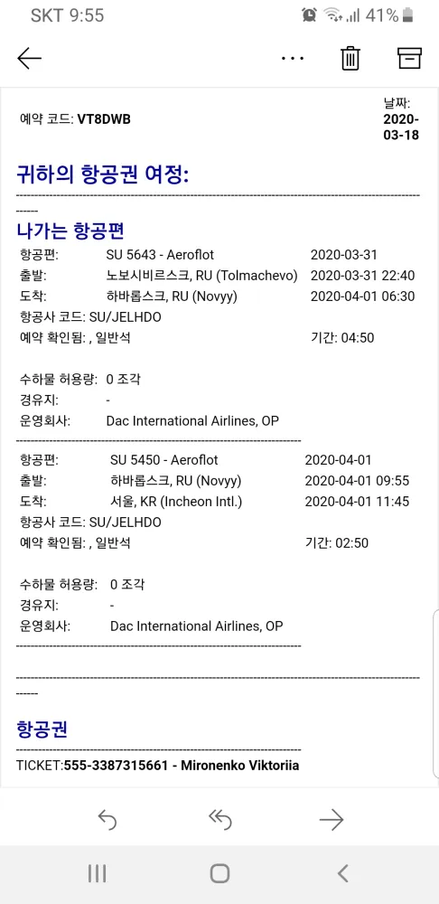 I bought a ticket because I wanted to go back to Korea, but I am sorry that it was canceled