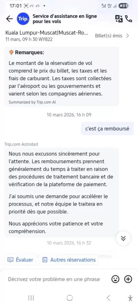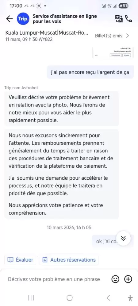 Desired outcome: Refund of the Ticket amount, please.