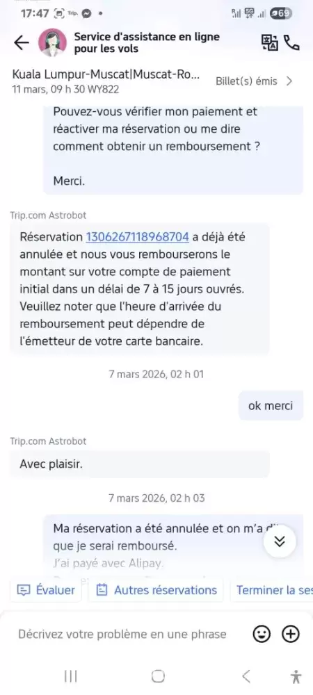 I am contacting you regarding my Kuala Lumpur – Muscat ticket. The flight was cancelled by your company, and I have all the proof of this cancellation.
