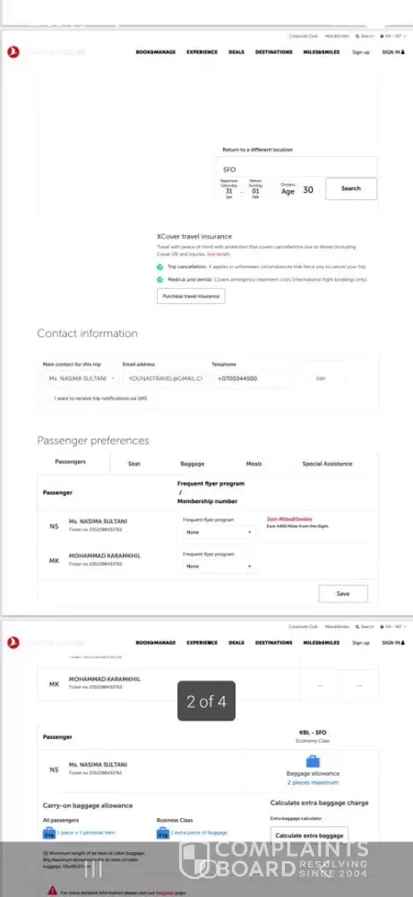 All relevant documents, including ticket details, boarding passes, bassinet payment receipt, and hotel receipt, are attached.