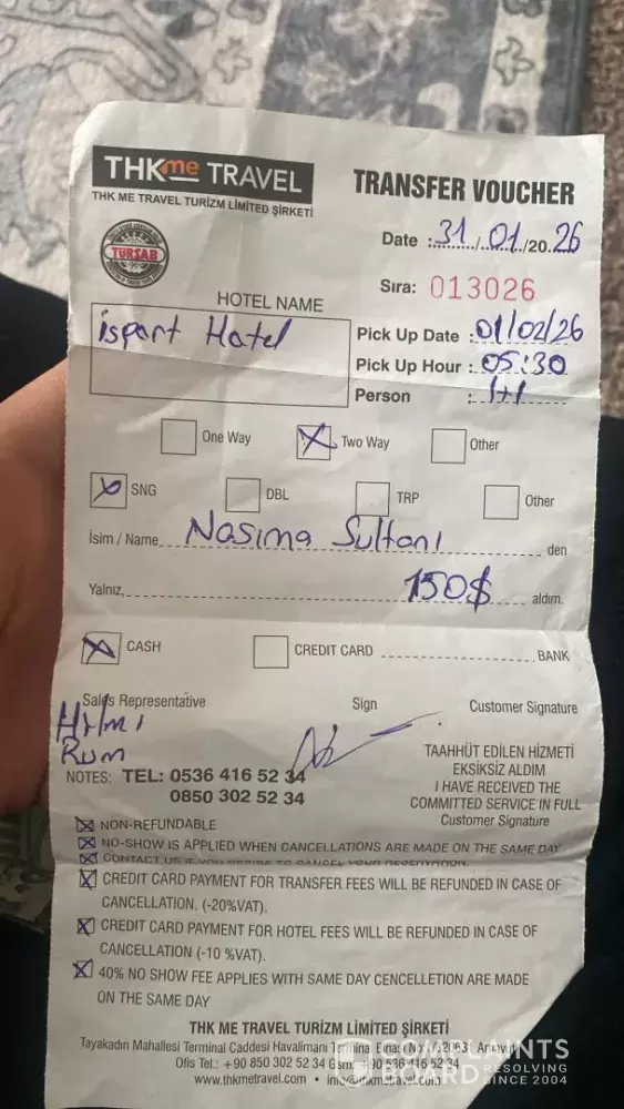 2. Reimbursement of the one-night hotel accommodation paid in Istanbul