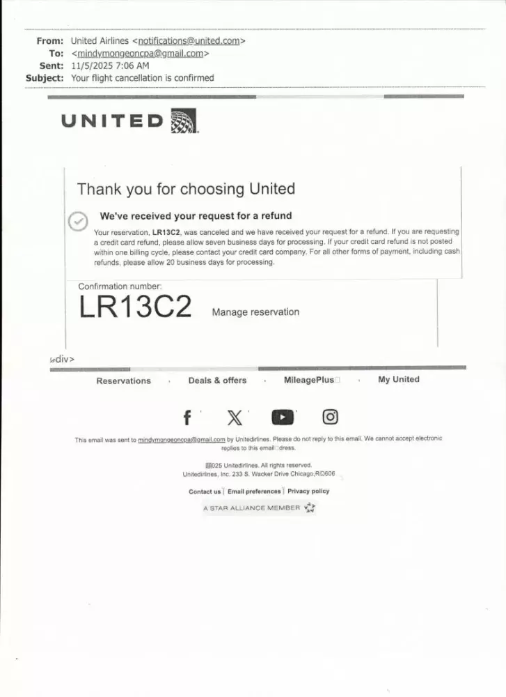 Can you please help me with this problem? I look for ward to hearing back from you. I will forward in a separate email all of the emails sent to me from United Airlines.