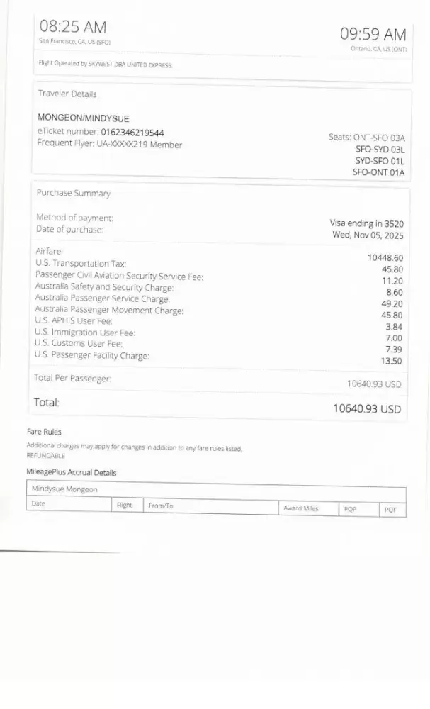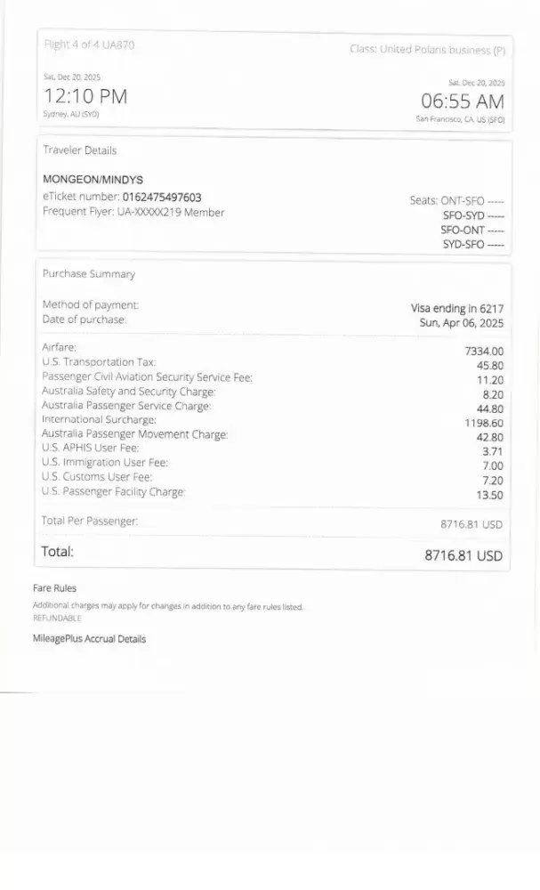 Claimed loss: $1,924.12 the difference between my original cancelled flight and the new fee after rebooking the exact same flight and seats.