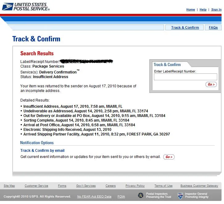 Here is a letter i had sent to the usps inspector's office and the bell facility in california: To whom it may concern, On july 31st, 2010 i mailed out a package media mail delivery (Tracking no. [protected]) . The amazon.com customer never received the package which was supposed to reach maryland. According to the confirmation - tracking number...