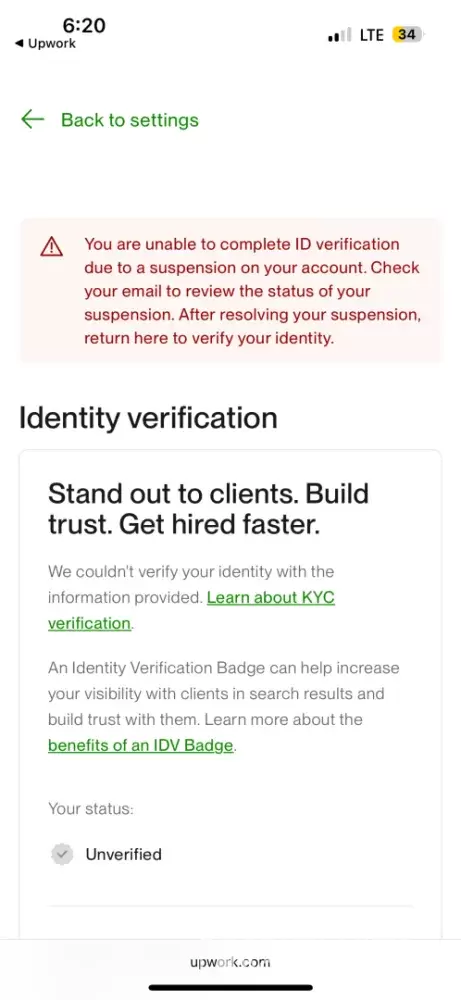 I recently created my account on UPWORK with the name Mehak Arora I bought connects as well to start my work and after that I tried to verify my id, may be because of some technical error, UPWORK could not verify my id and they put my account into permanent suspension, I have all the valid proofs to confirm that I am a real person and I am true to UPWORK, please help me recover my account.