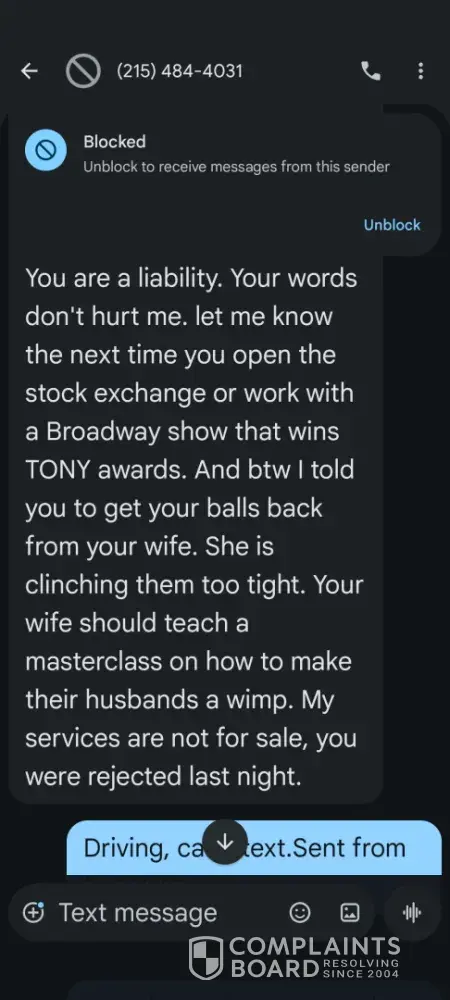 She then proceeded to insult me and tell me I was too inexperienced to join her scam company.