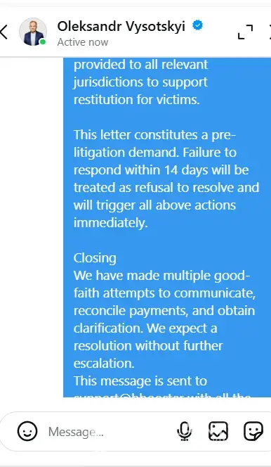 We contacted Mr. Vysotskyi directly to clarify his role in Teleland, which we consider to be an international scam based on extensive evidence from victims worldwide. Unfortunately, we received no response.