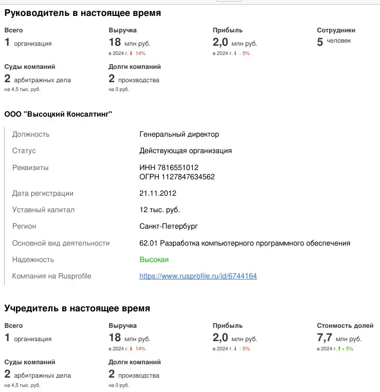 We also found that Mr. Vysotskyi is connected to several companies, including: