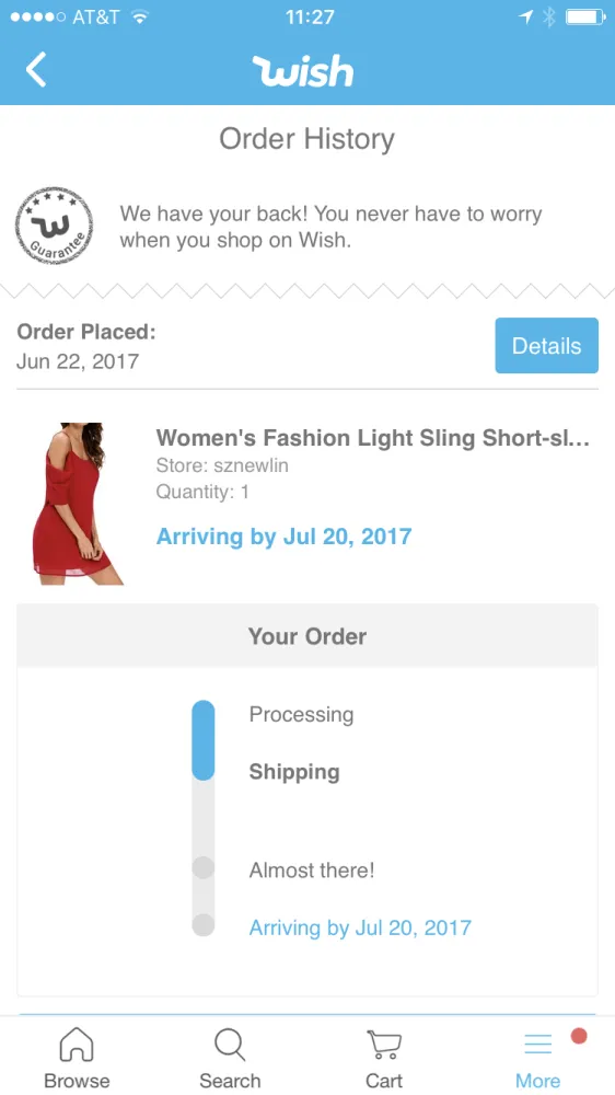 there are many items I would have got if wish could get things right as fast as GEEK If this is not made right I will tell every one I can not to by from wish using face book twitter and in person I have got many to by from geek and they are happy that could have been wish as well.