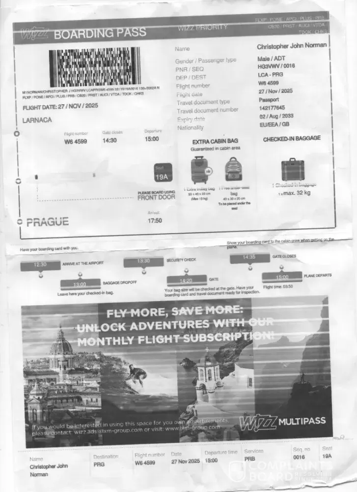 As a result, when I arrived at Bucharest Airport in Romania to check in for my flight to Dubai, I was informed that I had to pay a check-in fee due to this issue. I was advised to request a reimbursement from Wizz Air, as this error was not caused by me.