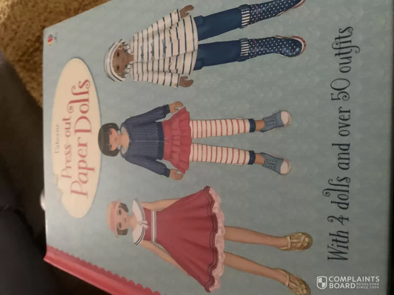 The book press out paper dolls arrived as just a book cover, nothing inside, it was meant to have paper dolls & outfits inside ,instead it was just a book cover, who pays £12 for a book cover. Cannot get through to customer service, just a bot who did not have the correct question for me to ask. Would like my money back please or the inside pages of my book