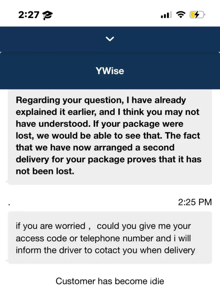 The previous Yanwen driver had managed to deliver a few packages before. But the current driver chose to avoid reporting the mishandled package. Instead, they marked it as undelivered due to a wrong address to avoid getting in trouble. That was a cowardly move.