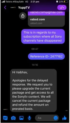 From 1st July, without any notice or discussion, YuppTV have discontinued that channel on my subscription. When I called up customer service, they told me to pay extra for the Sony channels but were not willing to refund my full amount.